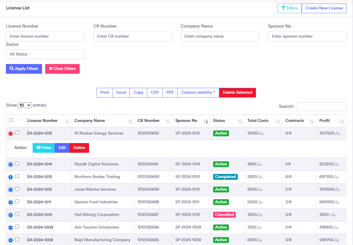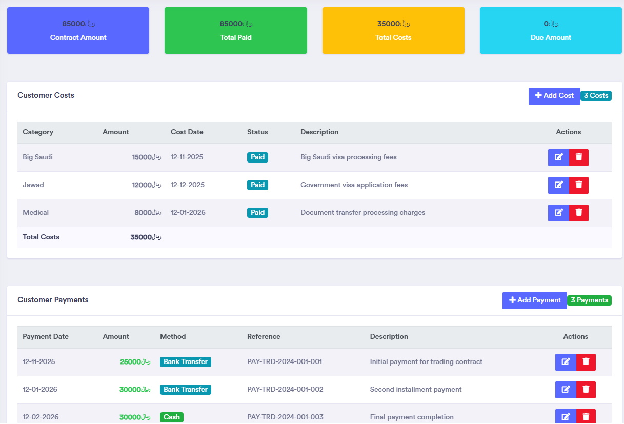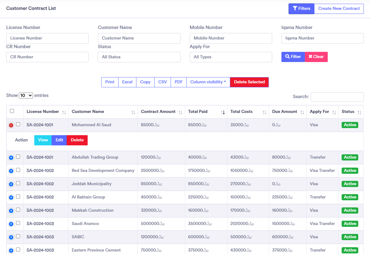 Manage License, Costing, Visa, Transfer, costing, client, expense, payments, collection, due, profit management in one place.
