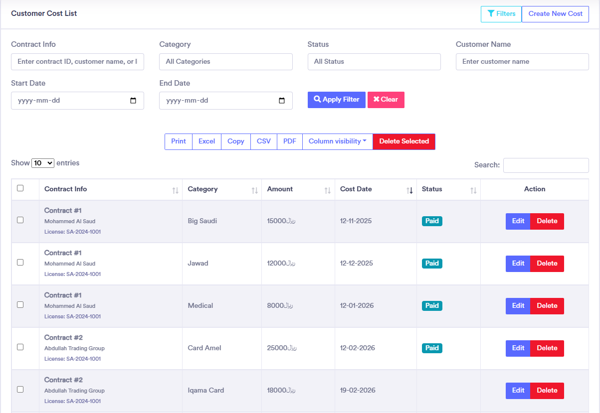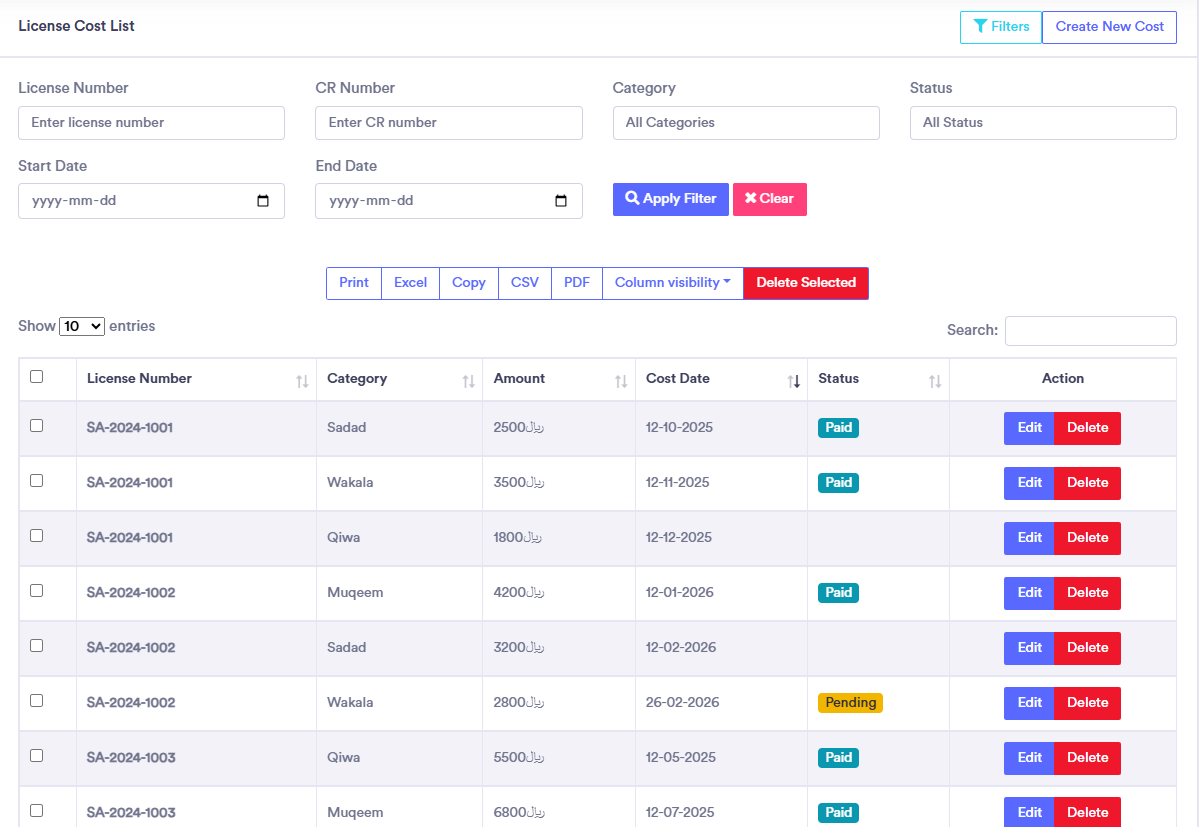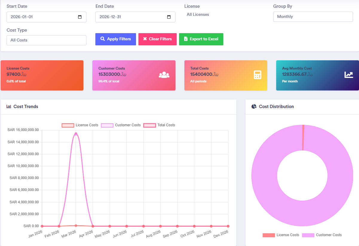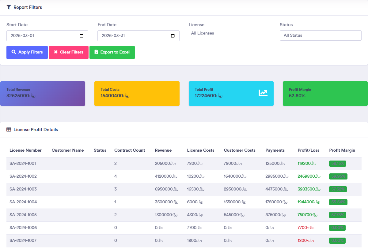 Manage License, Costing, Visa, Transfer, costing, client, expense, payments, collection, due, profit management in one place.