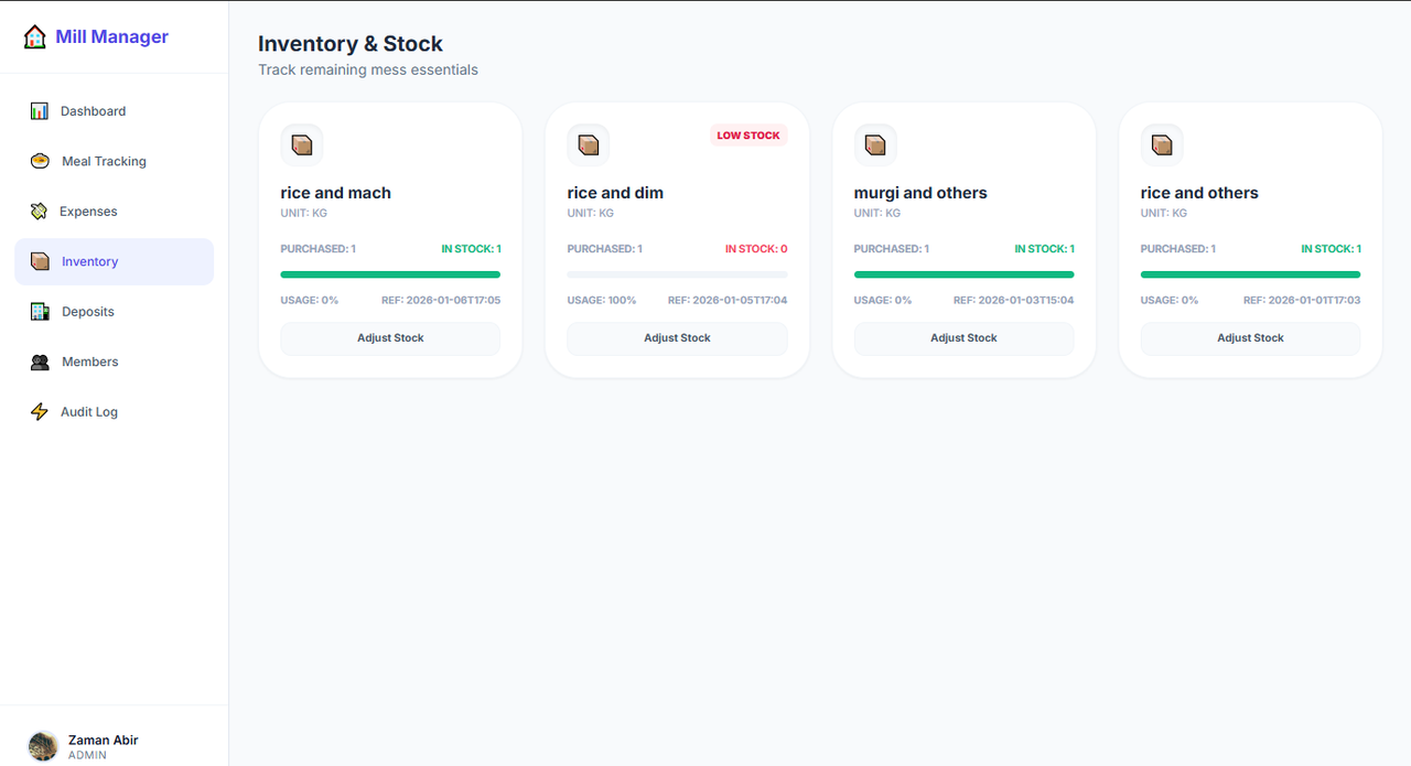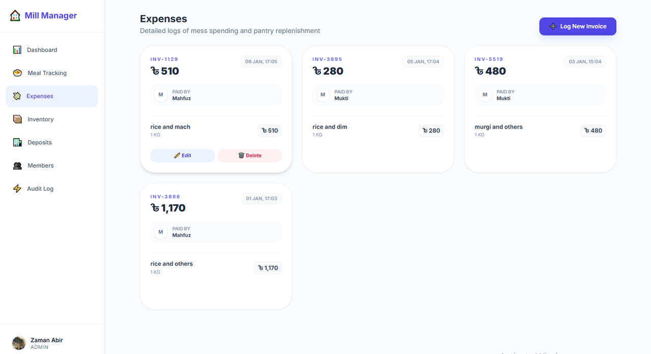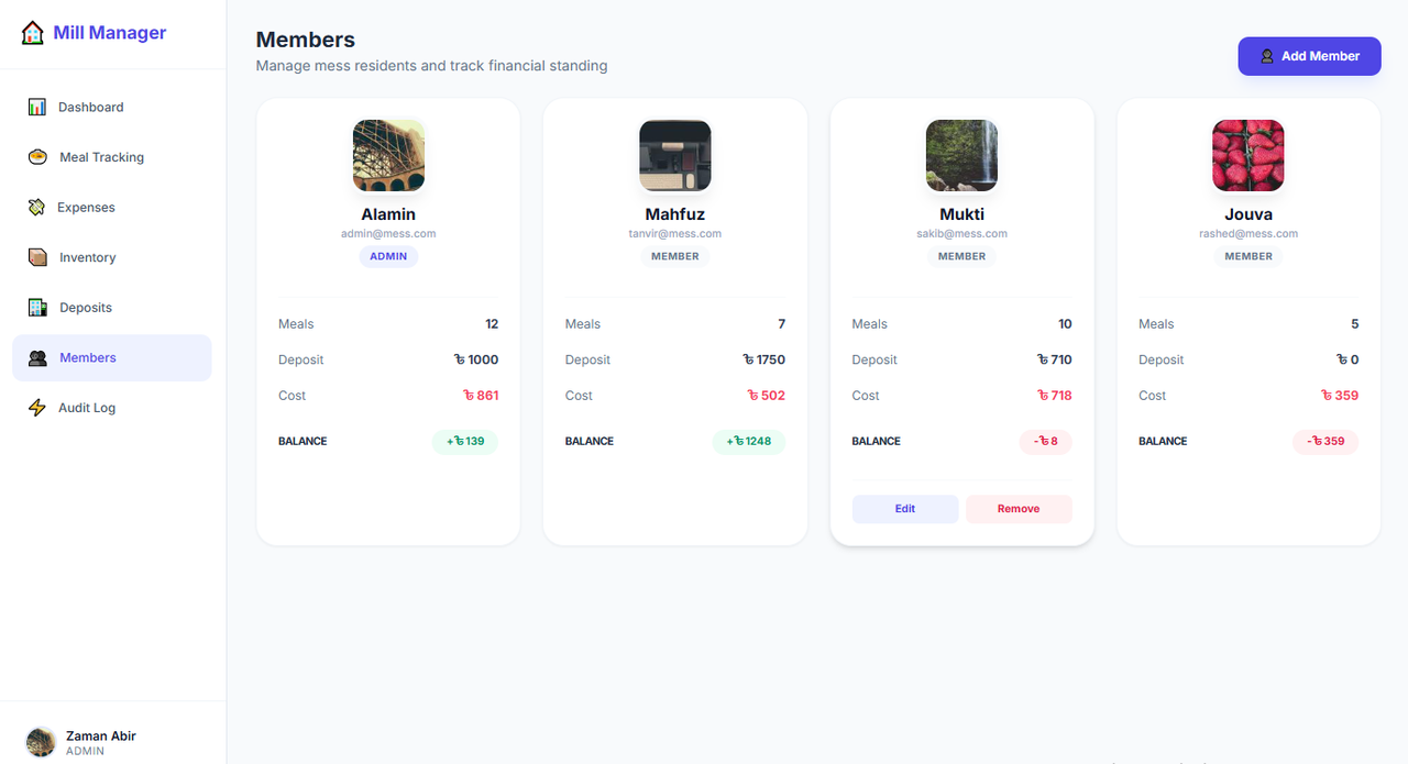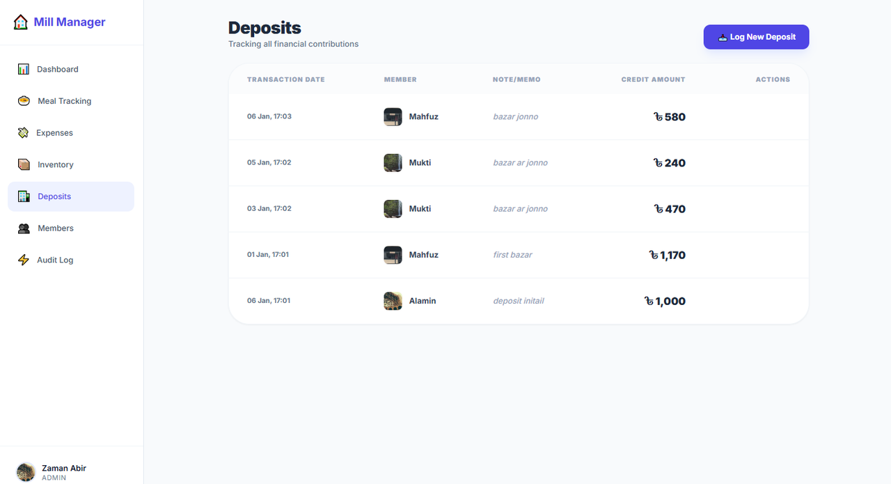 Bachelor Meal Management software application. Meal tracking, Expense managment, Deposit log transactions, Inventory tracking, Members managment, Monthly and daily reports. Due and overdue system