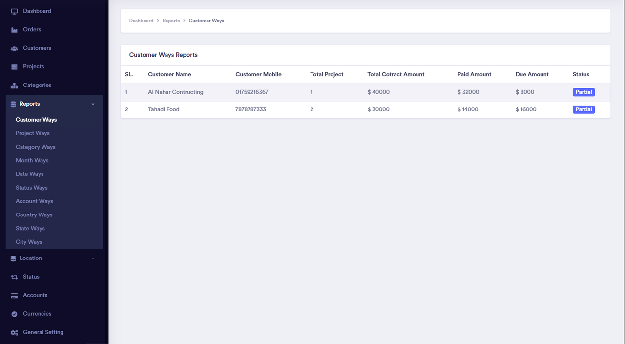 Manage your company digital products or clients projects. tracking your project revenue and customer due collection and payment